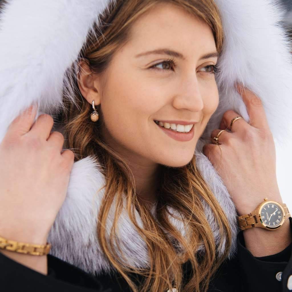 Dřevěné hodinky Barrique Noir mají elegantní černý ciferník se zlatými prvky. Vyznačují se absolutní noblesou.