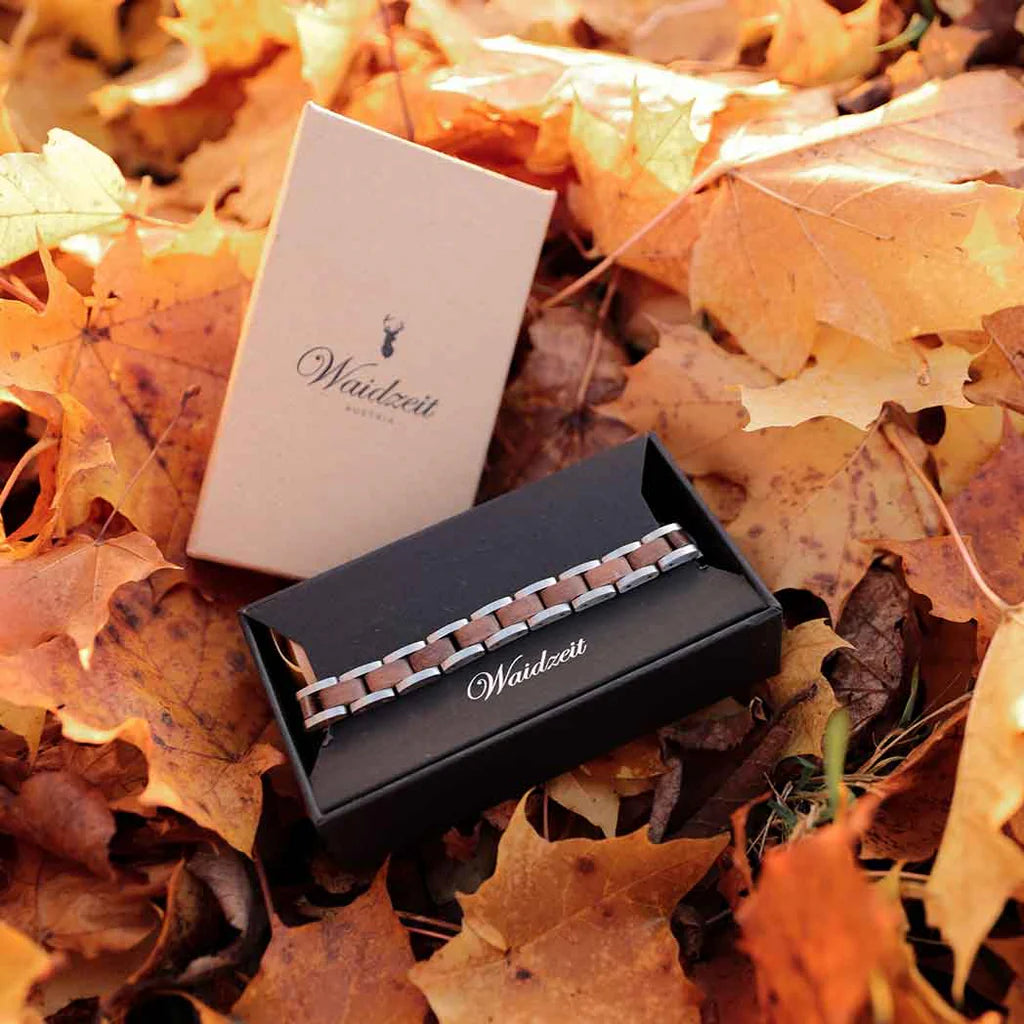 Náramek Waidzeit představuje dokonalou harmonii přírody a elegance. Tento stylový šperk, vyrobený z prémiového dubového dřeva a grafitově černé nerezové oceli, zaujme svým nadčasovým designem. Dostupný v různých variantách, je ideálním doplňkem k vašim hodinkám Waidzeit nebo výrazným solitérem, který upoutá pozornost.