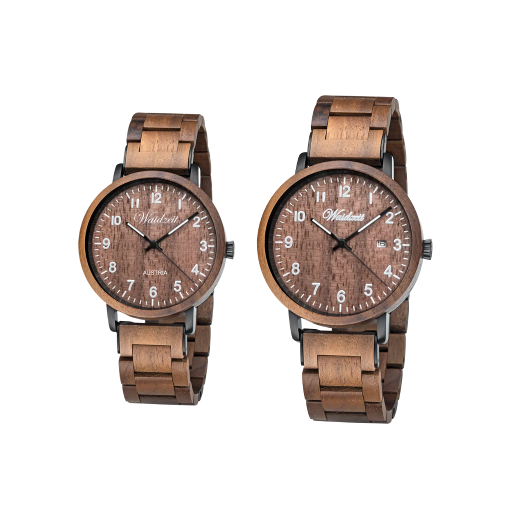 Velké, snadno čitelné číslice a praktický datumovník vám zajistí dokonalý přehled – vždy stylově a spolehlivě. Tmavě hnědé ořechové dřevo dodává hodinkám nadčasový vzhled a zároveň zajišťuje výjimečně lehké a pohodlné nošení.