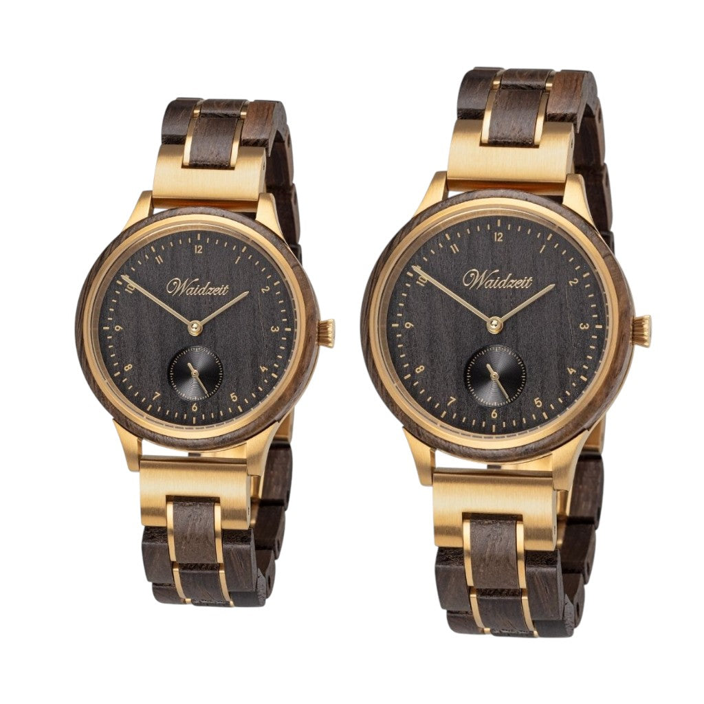 Mystik s kombinací temného mystického dubového dřeva a zlaté nerezové oceli je obzvlášť krásný a vznešený. Ideální pro každodenní nošení i na speciální příležitosti.